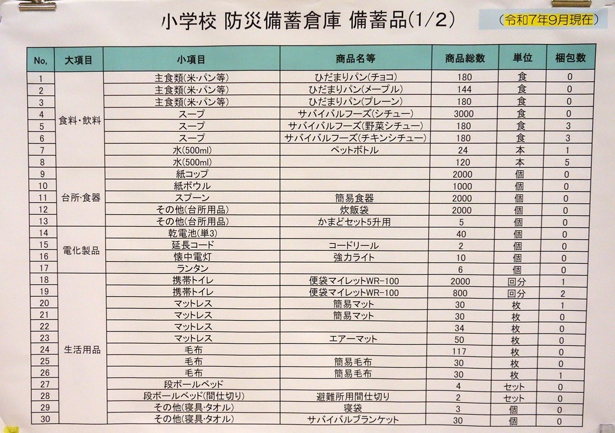 なんとか避難所にたどり着いても、そこからが大変だ。今回、防災訓練で訪れた学校の体育館に設置された避難所の備蓄品一覧を見てみると、避難所を訪れる人数にもよるが、決して潤沢にあるわけではない。実際、「避難時のルール・要請事項」として「避難所の備蓄品は十分でないため、3日間程度の自助対応を要請する」とある。足りない救援物資が届くまでには、さらに時間がかかるだろう。
