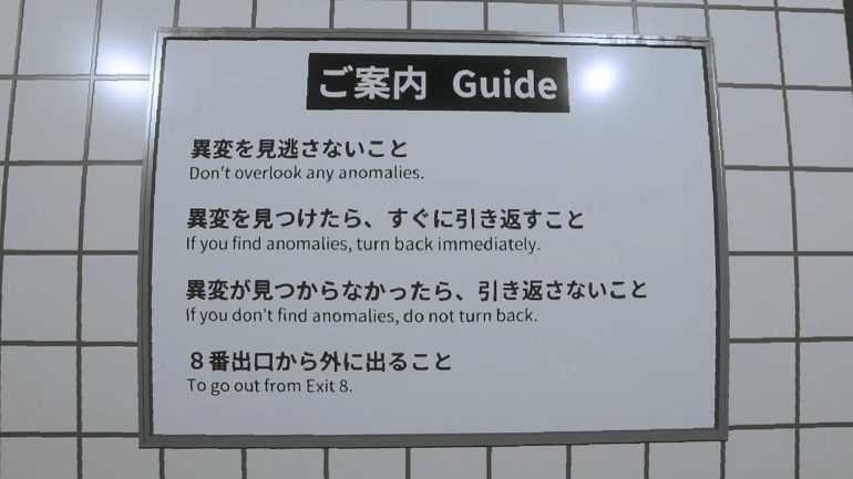 まず、『8番出口』は、地下鉄駅の地下通路に取り残された主人公が出口を目指すゲームだ。