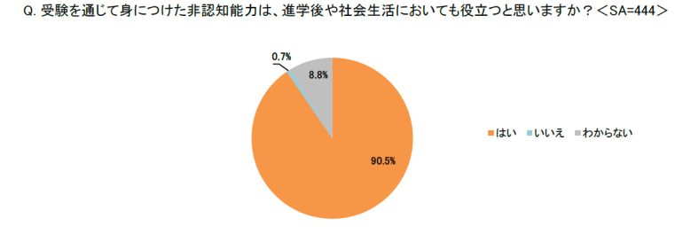 約9割の親が非認知能力は受験で有用だとし、受験だけでなく社会で生きていくうえでも役立つと期待!