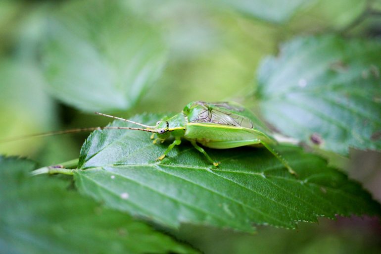 採集方法は仲間によって異なります。まず、草むらの葉っぱの上などにいることの多いキリギリスの仲間などを捕まえるには前もって網を2つ用意しておくことをおすすめします。鳴き声を頼りに探して姿を確認したら、彼らが逃げて飛びそうな方向や下側に1つの網を構えておいて、もう1つの網で捕まえようとするとゲットできる確率が高まります。