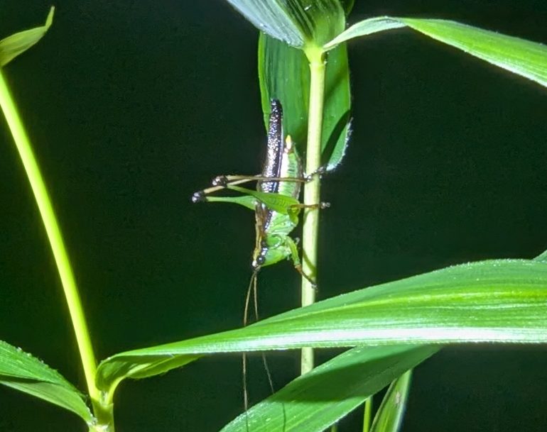森の周りには数の多くの鳴く虫が生息しており、特に林縁部などでは様々な音色が聞こえてきます。上記で紹介してきた種類と共に、10月以降でもササキリやクツワムシなどを観察することができます。