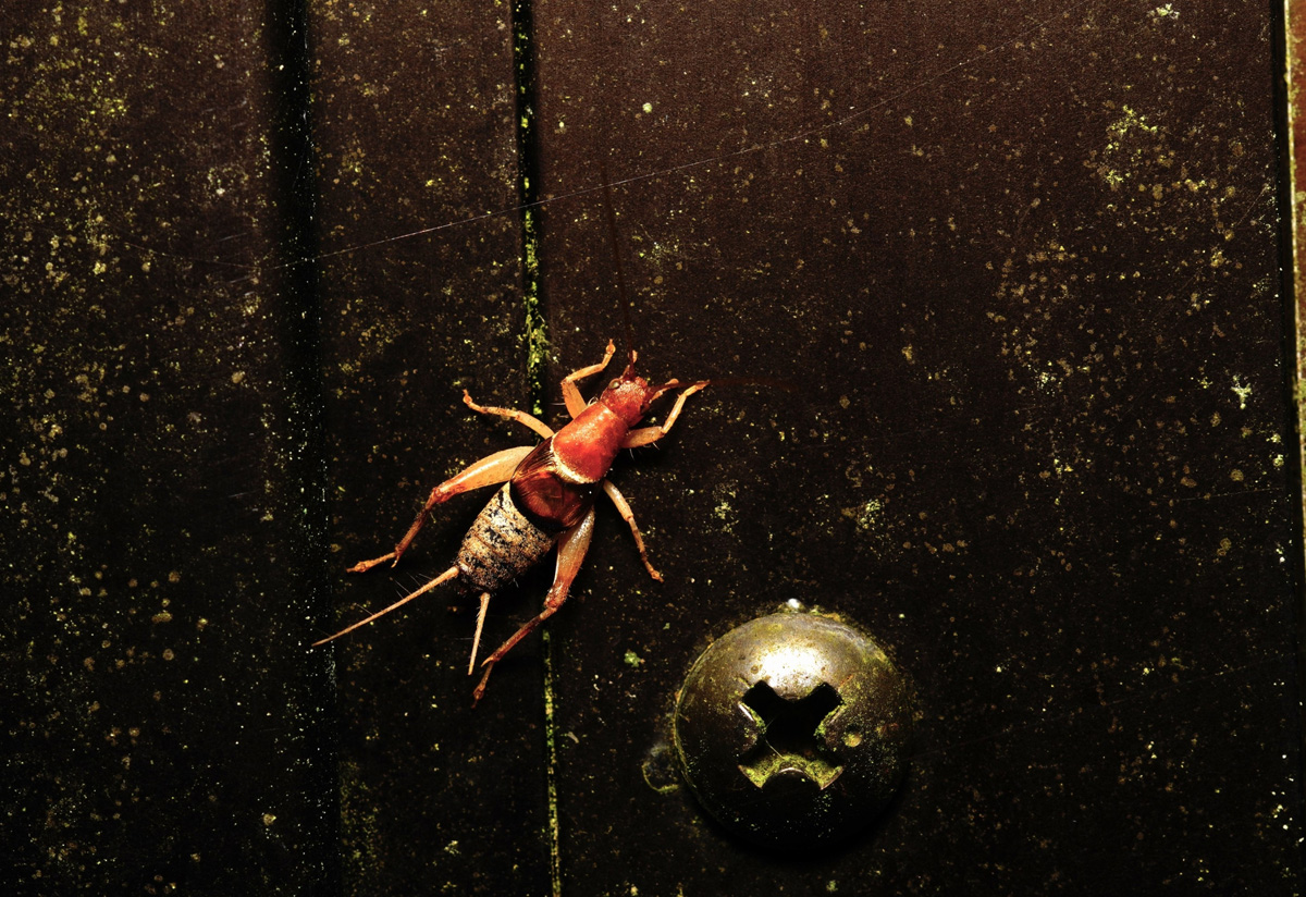 カネタタキ科に属する種類で、オスは「チンチンチン」というまさに鐘を叩くような鳴き声で鳴きます。8月頃から12月頃までというかなり長い期間見ることができ、夏は夜にしか鳴かないのに対して、秋になると昼夜問わず鳴くようになります。東北地方中部から沖縄まで広く分布しています。