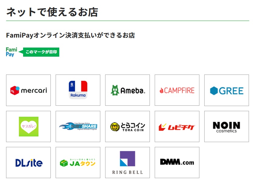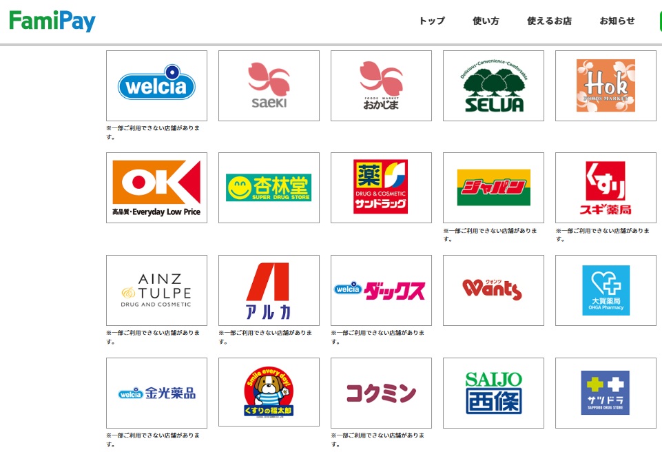 ファミペイが使える店舗:https://famipay.famidigi.jp/store_info/