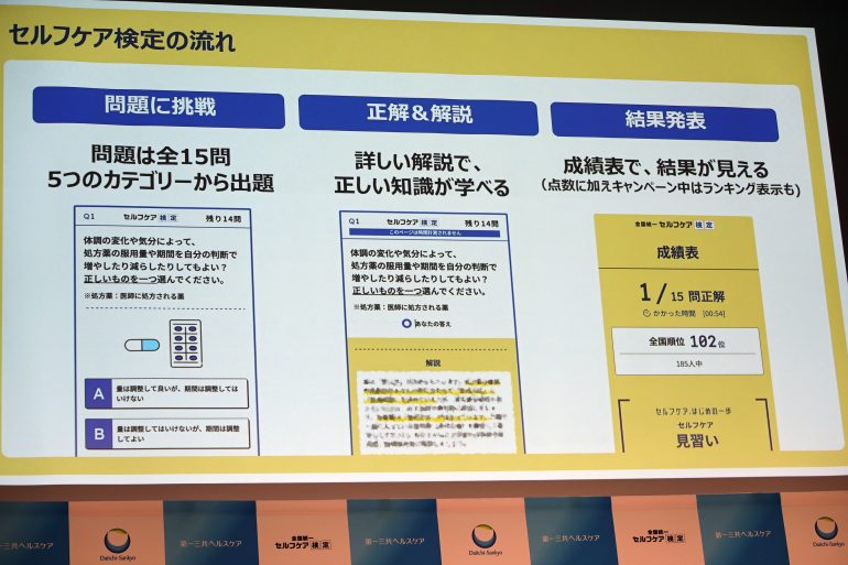 第一三共ヘルスケアは2025年10月22日、「全国統一 セルフケア検定」を公開した。これは正しい健康情報をクイズ形式で楽しく学べるWebコンテンツ。当日には公開記念イベントを実施し、ゲストの鈴木福さんと学生らがセルフケアクイズに挑戦。互いの知識を競い合った。