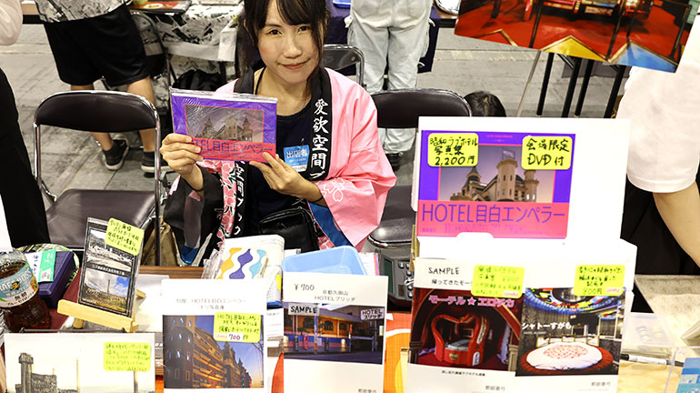 レア感あふれる雰囲気を発散していたのが、写真家・那部亜弓さんのブース。昭和レトロなラブホテルを巡っては写真を撮る、知る人ぞ知る方で、文学フリマでは、そうしたラブホテルの写真集を販売していた。