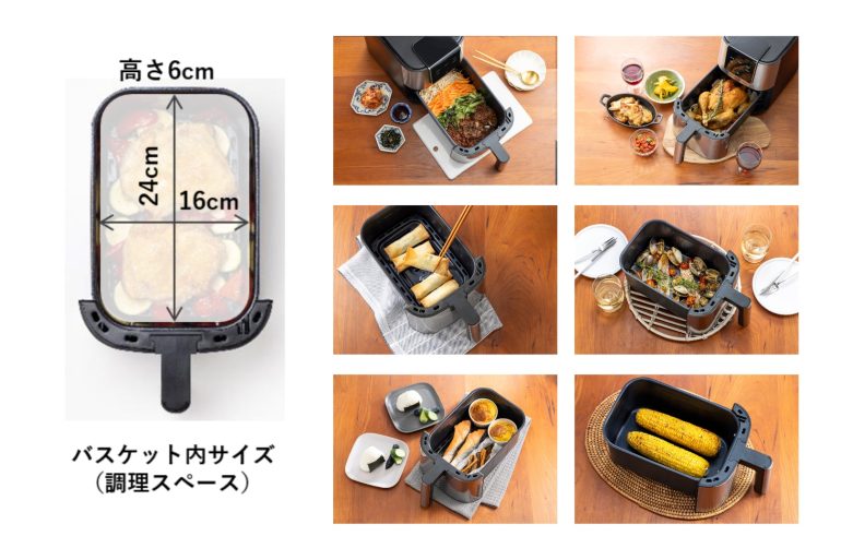 そんな同製品の特長は、高温熱風循環式を採用し、効率よく短時間で調理ができるところ。しかも、油を使わず、または少ない油で調理可能で、水を入れればヘルシーな「蒸し料理」も作ることができる。