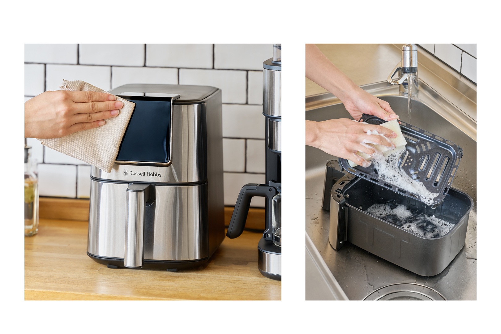 このほか、お手入れも簡単で、バスケット・プレートは取り外して丸洗いでき、食器用洗濯機にも対応。操作パネル・本体は湿らせた布巾で拭くだけで、衛生的に使用することができる。なお、専用ペーパーライナーのほか、アルミホイル、アルミ皿も使用可能で、これらを活用することで、庫内が汚れにくくなるので、さらにお手入れが楽になる。