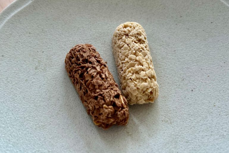 2025年に発売された、2フレーバーの『オーツ麦配合クランチ』。健康意識の高まりに応えるべく、腸内環境を整えるなどといったことにも役立つ〝オーツ麦〟を取り入れたお菓子として誕生した。