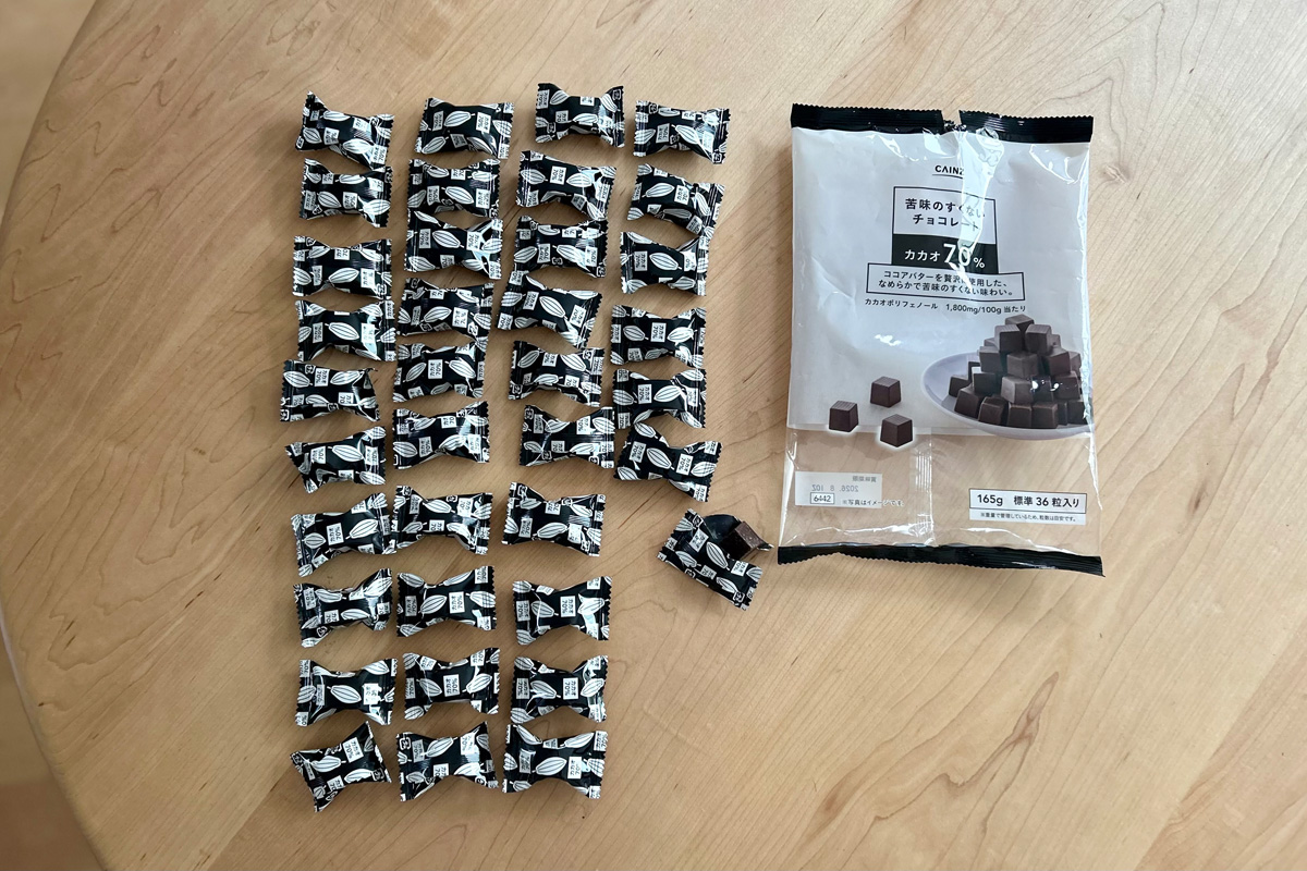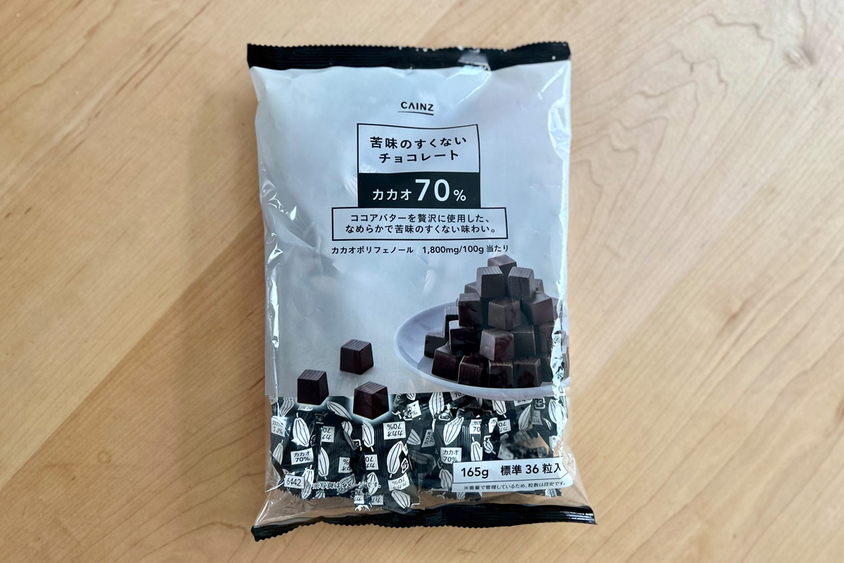 チョコレートは好きだが、健康的に楽しみたい。また、高カカオチョコレートは食べたいが、苦味はちょっと……などという人におすすめなのが『苦味のすくないチョコレート カカオ70% 165g』だ。