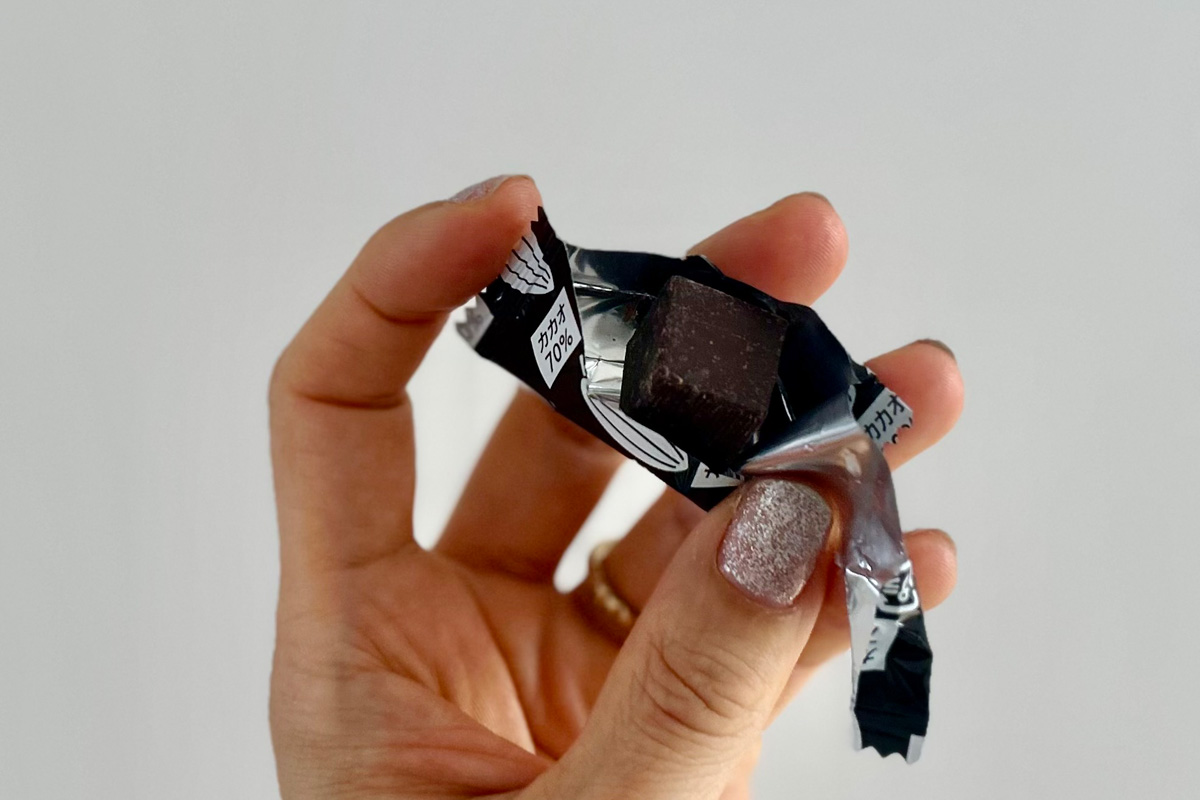 「今年は2025年10月に発売した、冬季限定のチョコレートです。苦味が穏やかで、お子さんも召しあがりやすい味わい。個包装なので、ご自宅からオフィスに食べる分だけ持っていけば、食べすぎも防げますね」