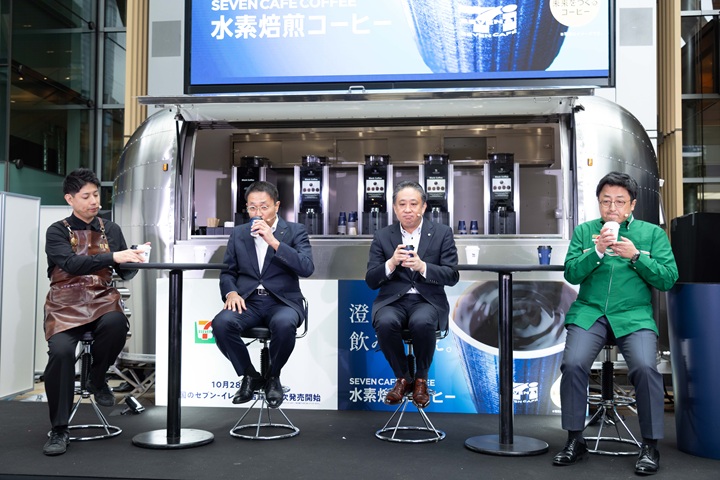水素焙煎コーヒーはUCC上島珈琲が世界で初めて量産化。その技術を取り入れた、これまでにない新しいセブンカフェが誕生したことを記念して、「セブンカフェ 水素焙煎コーヒー ~未来をつくるコーヒー~ 新商品発表会」が開催された。