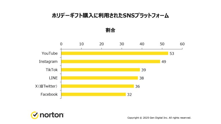 さらに、22%の消費者が「SNS広告からホリデーギフトを購入した経験がある」と回答。購入に利用された主なSNSプラットフォームはYouTube(53%)とInstagram(49%)となった。