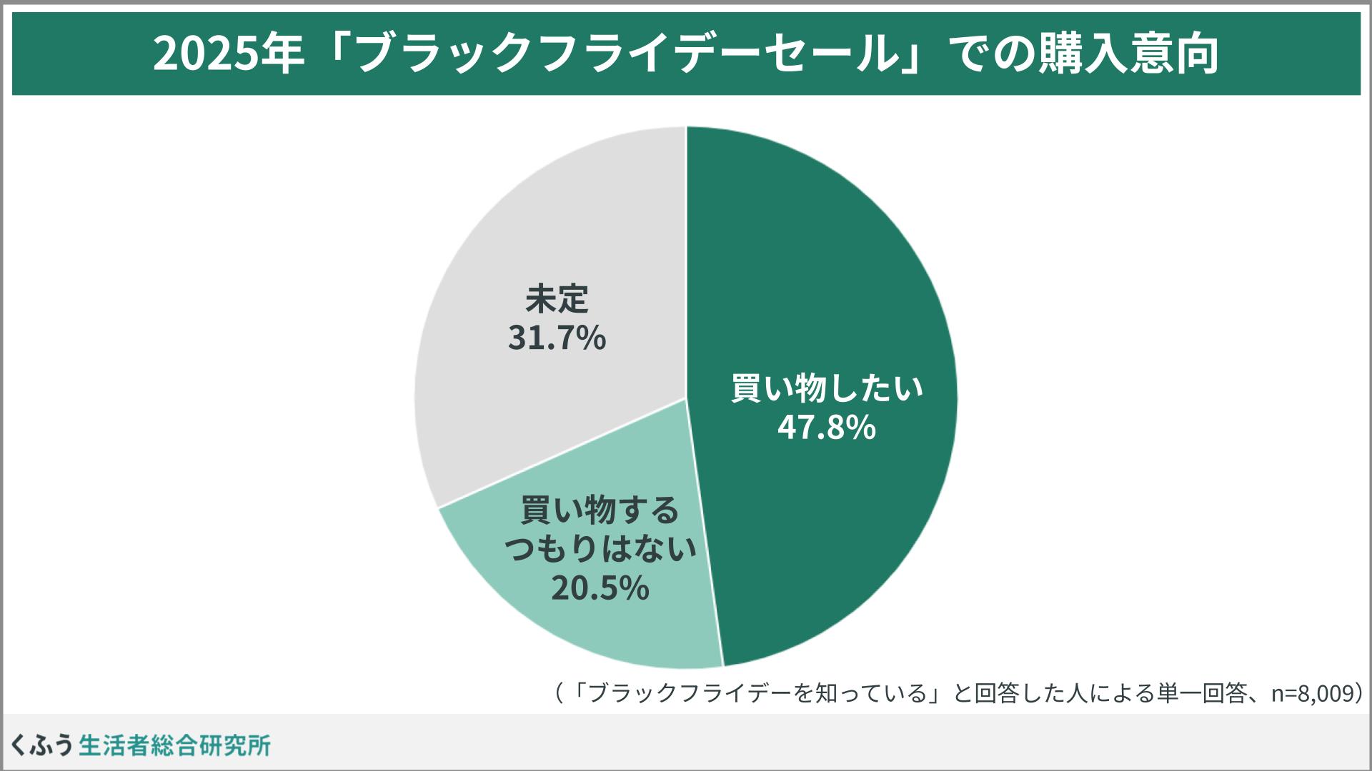 ブラックフライデーセールでの購入意向を尋ねたところ、約半数(47.8%)が「買い物したい」と回答した。