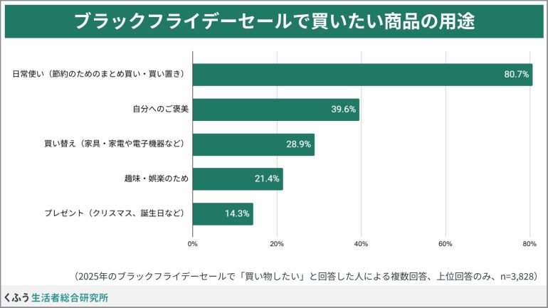 そのため、用途は「日常使い」が約8割と圧倒的に多く、物価高で節約志向が続く中、少しでも安くまとめ買いや買い置きしておきたいという気持ちが表れている。