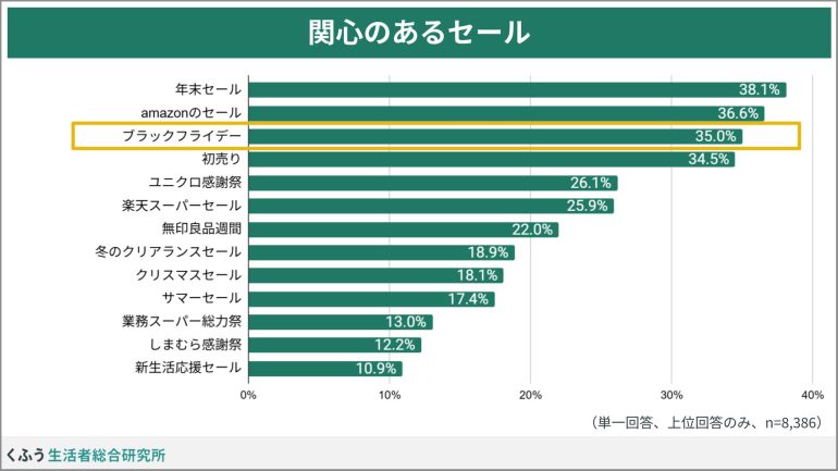 セールの中で「ブラックフライデー」は3番目に関心が高い