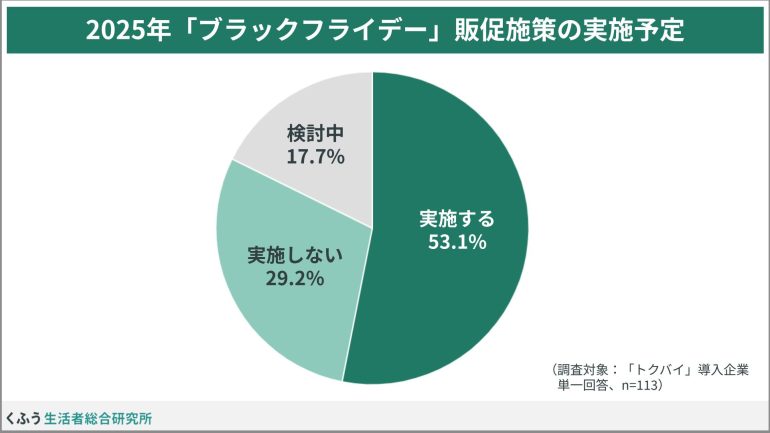 スーパーマーケットをはじめとする「トクバイ」導入企業に2025年のブラックフライデーに販促施策を実施するかと聞いたところ、半数以上の企業が「実施する」と回答した。販促施策を行う理由としては以下のような声が挙がった。
