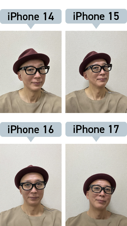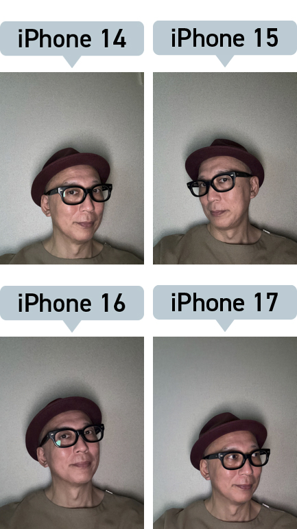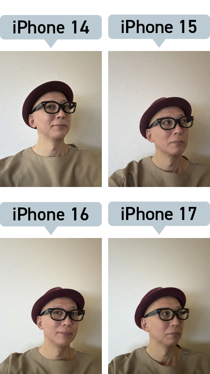 iPhone 14、iPhone 15、iPhone 16、iPhone 17で自撮りしてみた