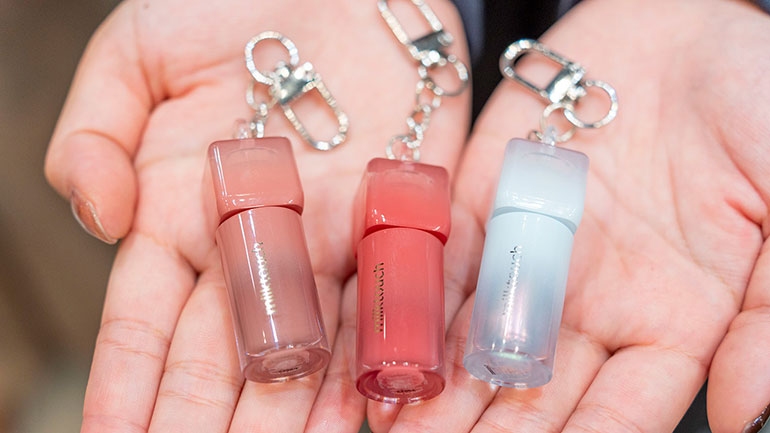 最初にノベルティやサンプルとしてミニコスメを作り、それを製品化した事例もある。Milk Touchは2025年春に渋谷ロフトでポップアップストアを行い、その時にミニサイズの「デューステインシアーグロス ミニ キーリング」をノベルティとしてプレゼントした。