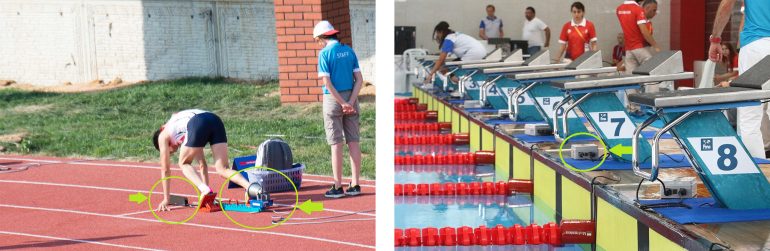 競技は基本的にオリンピックと同じルールで運営され、国際手話言語によるコミュニケーションや視覚的に保証された環境で行なわれます。とはいえ、世界に手話言語は200以上あり、国際手話言語を知らない選手も多い。そこで音の代わりに光や動作、デジタルデバイスの活用で、〝目で見てわかる〟形での競技運営が行われます。