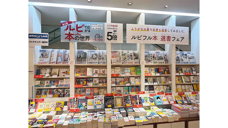 その一環として、ルビが振ふられた本のフェアを、丸善やジュンク堂書店の90店舗で実施していただきました。これは、11月下旬ごろよりルビフル本コーナーとなって丸善丸の内本店にて常設で販売される予定です。
