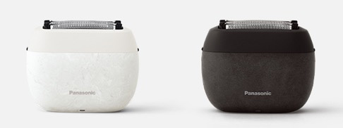 左から/ES-PV6A-W(マーブルホワイト)、ES-PV6A-K(マーブルブラック)。5枚刃システム。約14,000ストローク/分のリニアモーター駆動。本体寸法=H5.7×W7.2×D4.5cm。本体重量=約145g、使用時間=1回のフル充電で約14日間(1日1回、約3分間使用で使い切るまで)。充電時間=急速2時間充電。充電システム=USB充電【Type-C】。