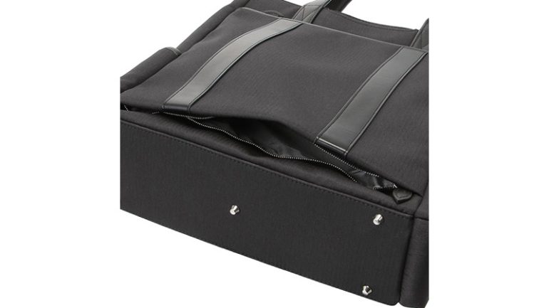 バッグは、季節を問わず様々な服装に合わせやすいヘリンボン柄の生地を採用し、外装と内装ともに複数の収納ポケットを装備。
