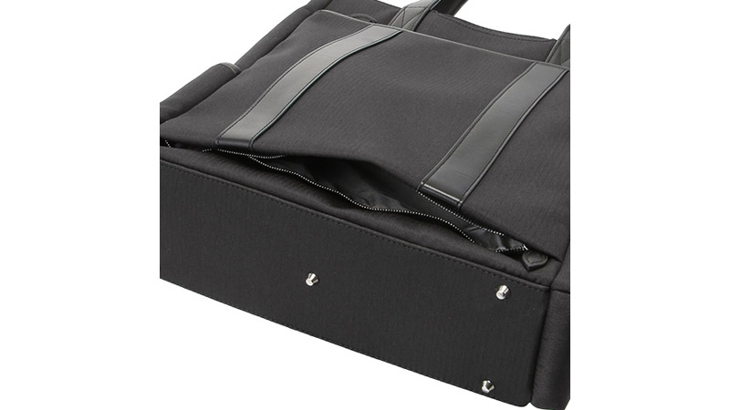 外装、内装ともに収納ポケットがいくつもあり整理整頓がしやすく、さらに出張時などに便利なキャリーケースにセットアップできるベルトも装備。