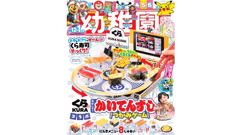 小学館が発行する幼児向け雑誌『幼稚園』の12・1月号(発売日:2025年10月31日/価格:1,480円)に、「くら寿司」の回転レーンやお寿司を模した付録が登場した。
