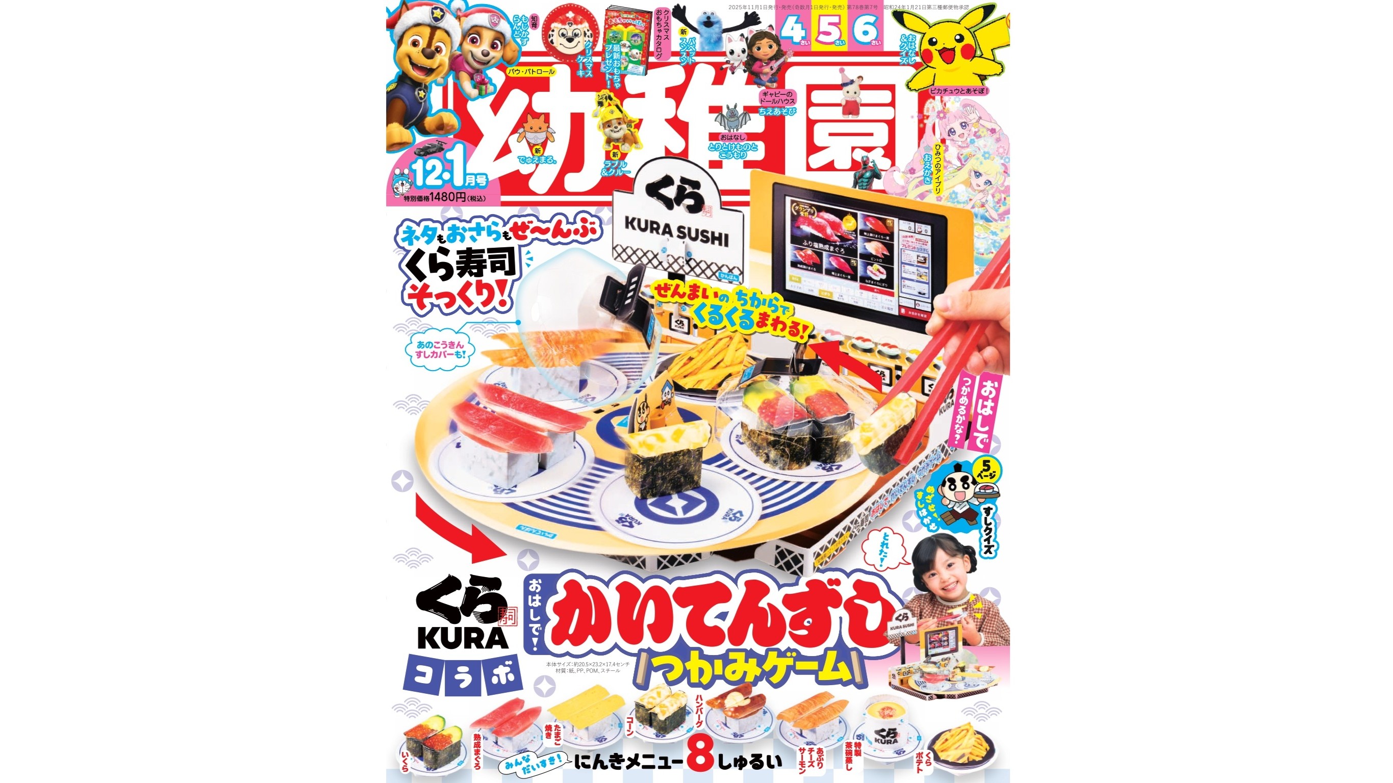 小学館が発行する幼児向け雑誌『幼稚園』の12・1月号(発売日:2025年10月31日/価格:1,480円)に、「くら寿司」の回転レーンやお寿司を模した付録が登場した。