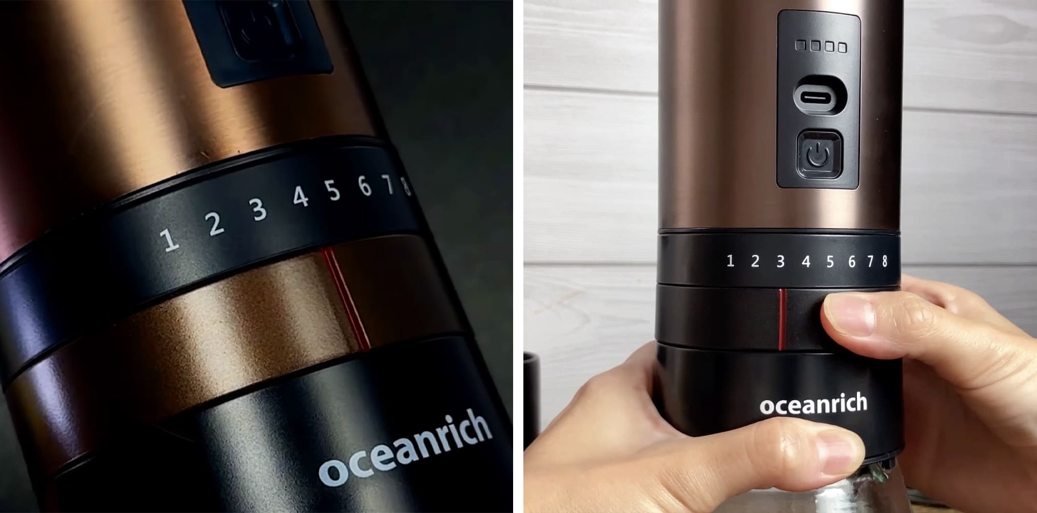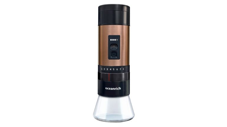 「oceanrich G7」は、コーヒー豆専用のスケールを搭載した充電式の電動コーヒーミル。コーヒー豆専用のスケールを搭載したスケールで重さを量った豆を、そのままステンレス製のコニカル刃で挽くことができる設計で、豆の計量とグラインドをこの1台で行うことができる。