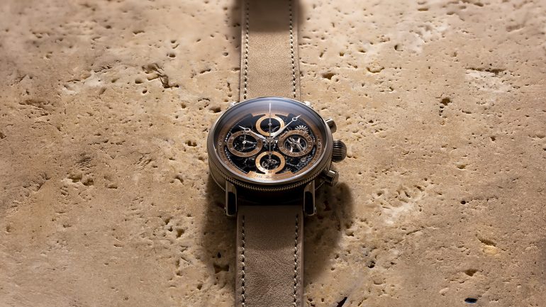 砂丘にインスパイアされた文字盤と堅牢なアースカラークロノスイスが世界で初めて自動巻きスケルトン・クロノグラフとして発表した「オーパス」シリーズ。