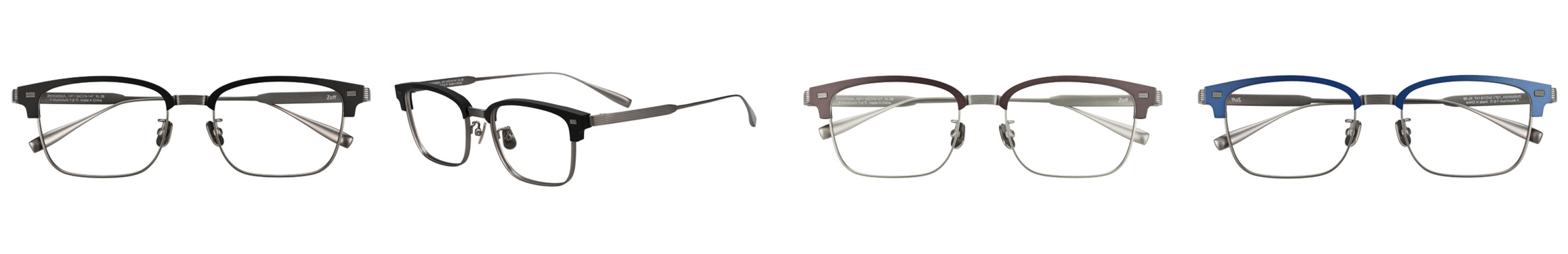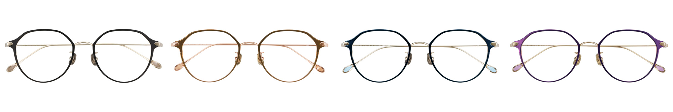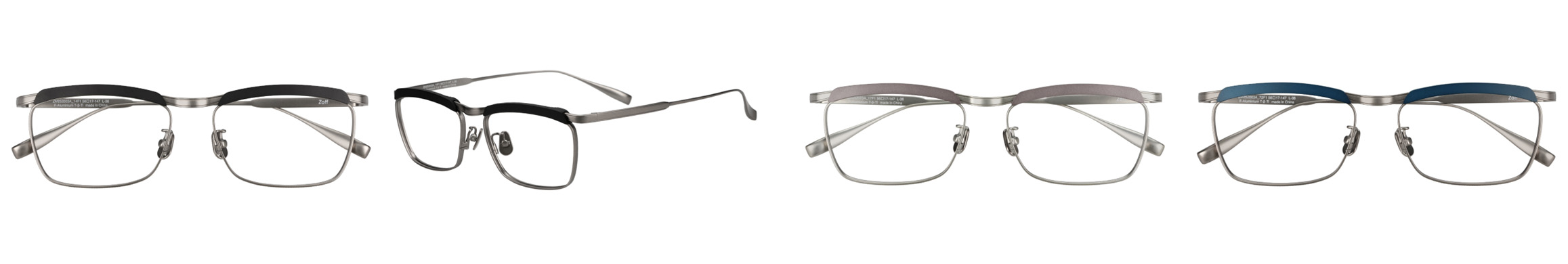 細身で洗練されたデザインが高級感を演出するリムメタルフレーム、異素材と掛け合わせることでチタニウムの魅力を引き立てるコンビネーションフレーム、チタニウムを贅沢に使用し目元をリッチに演出するシートメタルフレーム、全18型57種を展開。