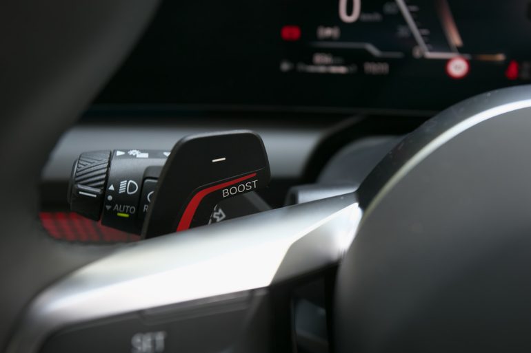 しかし、走りの性能は実用車レベルではない。ターボを装着、48Vマイルドハイブリッド+M専用のアダプティブサスの組み合わせは爽快な走りを楽しませてくれるスポーツディーゼルハッチだ。新設計の7速ATシフトの小さなツマミをDレンジにシフトする。シフトモードはP/N/D・Sで、Pはシフトゲート下にプッシュ式でレイアウトされている。ドライビングモードの「MY MODE」は、大画面のコントロールディスプレイに表示される。スタートは「パーソナル」モード。