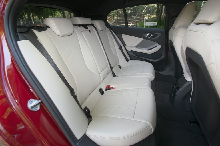 「コンフォート」から「スポーツ」モードに切り替える。乗り心地は、細かい上下動が硬めになり、ゴツゴツ感は高速走行でも体感できる。操舵力も全体に重めになり、スポーツ感が高まる。「120d」はMSportということもあり、タイヤはグッドイヤーの「イーグルF1」でサイズは225/45R18というスポーツタイヤを装着しているが、これがオーバークオリティーと感じさせないぐらいの走りが楽しめる。「M135 XDrive」ほど、過敏なモデルでなくても、BMW「1シリーズ」は、全体にスポーティ志向のコンパクトカーなのだ。