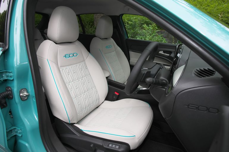 エンジンは新開発の3気筒DOHCガソリンターボだが、高速道路などでの走行では100km/hの巡行、6速2100回転、5速2800回転で回る。さらに0→100km/hの加速などでは、5500回転まで上昇し、加速を手伝っていた。ちなみに0→100km/hの加速タイムは10秒台なので、このクラスのファミリーカーの標準的な性能だ。新開発の3気筒エンジンは4000回転以上になると、ややエンジン音が大きくなるのだが「FIAT600 HYBRID」のボディは、遮音対策もしっかりしているようで、室内への音の侵入は抑えられており、車両先端のはるか遠くで、音がする、という感じだった。