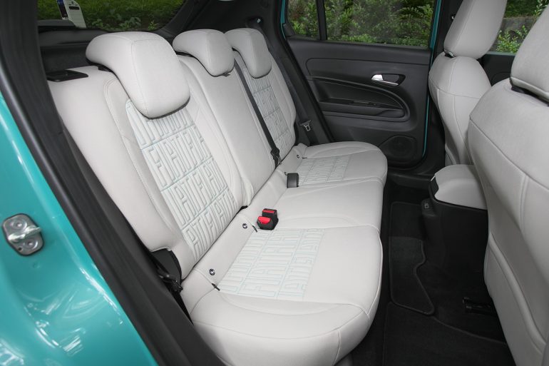 室内は車体の全高が1595mmあるので、ヘッドスペースは余裕がある。後席の着座位置は高くないので、若干、閉所感はある。足元はやや狭めだが、前席下にツマ先が入るので、窮屈ではなかった。