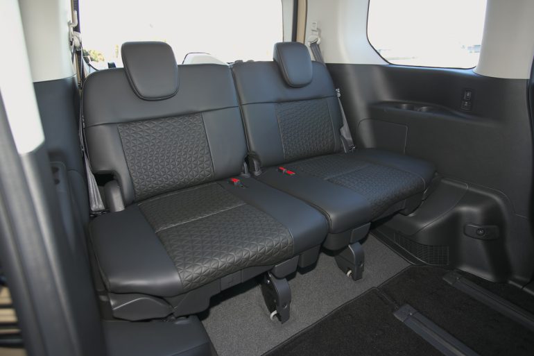 3列目の着座は高めで、前方視界が良く、閉所感はない。足元は2列目が中間ポジションだと、狭くない。3列目からは2列目のシートをペダルで動かすこともできる。2列目背もたれにテーブルも内蔵されているので、ドライブは快適だ。