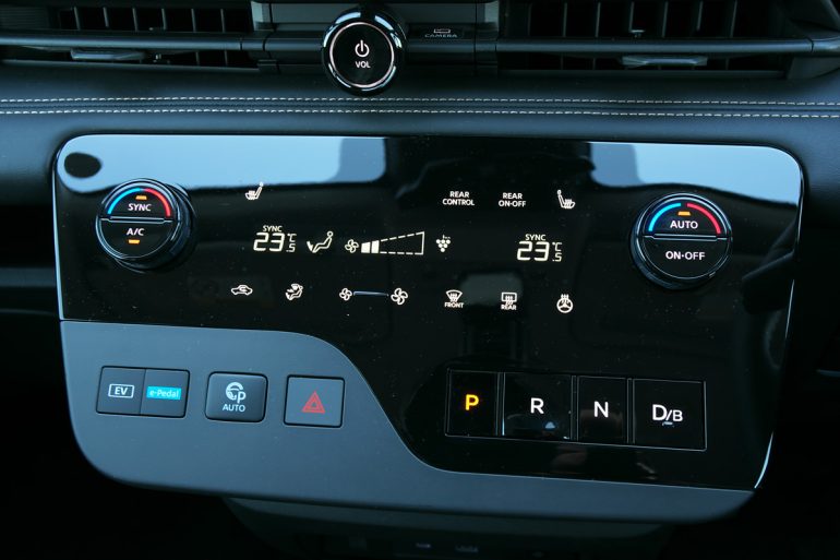 「スタンダード」で走り始める。スタートからタイムラグなく、動き出す。フロント163PS/315Nm、リア82PS/195Nmのモーターが駆動を開始する。日産の電動車は、エンジンはモーターへの電力供給に使い、駆動には使われていない。この方式が日産のEVの考え方のひとつだ。電池の充電量が減ってくると、充電のためにエンジンがかかる。振動とうなり音はやや大きめ。運転をしているとそれがわかる。