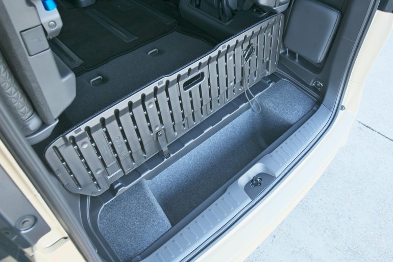 ラゲージスペースの床下にもサブトランクが設けられている。こちらも深さ約20cmほどなので、使い勝手はよかった。サイズも大きすぎず、フルチェンジから年月を経過しているのに、いまだに1BOXミニバンのベストセラーというのが理解できた。