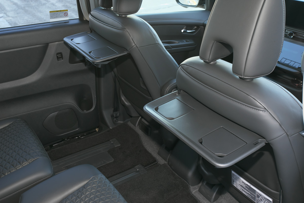 3列目の着座は高めで、前方視界が良く、閉所感はない。足元は2列目が中間ポジションだと、狭くない。3列目からは2列目のシートをペダルで動かすこともできる。2列目背もたれにテーブルも内蔵されているので、ドライブは快適だ。