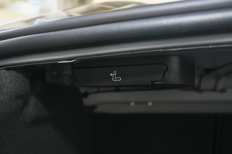 サッシュレスのドアウインドは、全開にしても約半分は残ってしまうのは、ちょっと開放感に欠ける。背もたれは2/1/2の3分割前倒し。中央部のアームレスト部分だけが前倒できるのは、長尺物をトランクから収納しても、左右に1名ずつ座れるのが便利だ。
