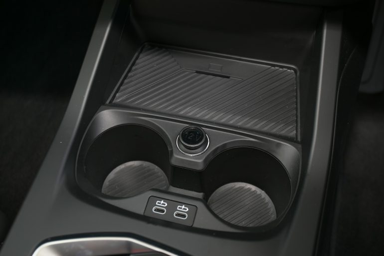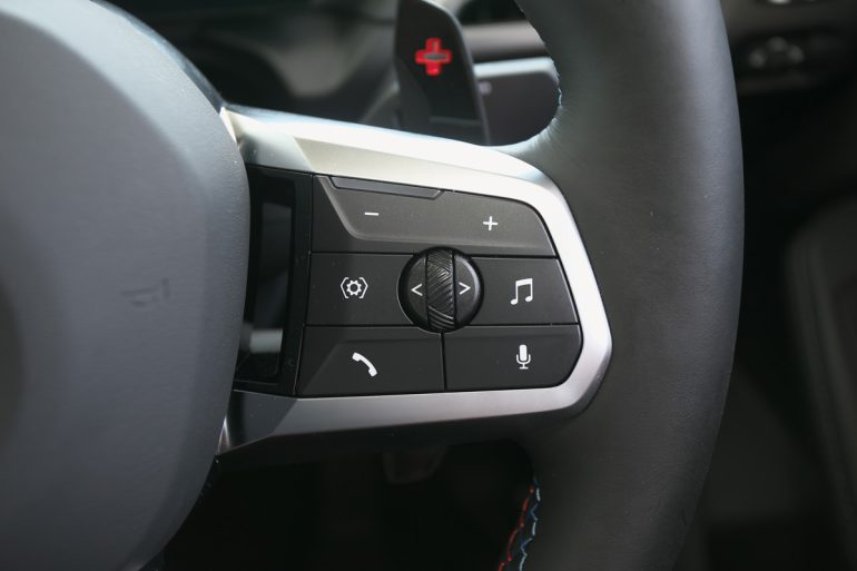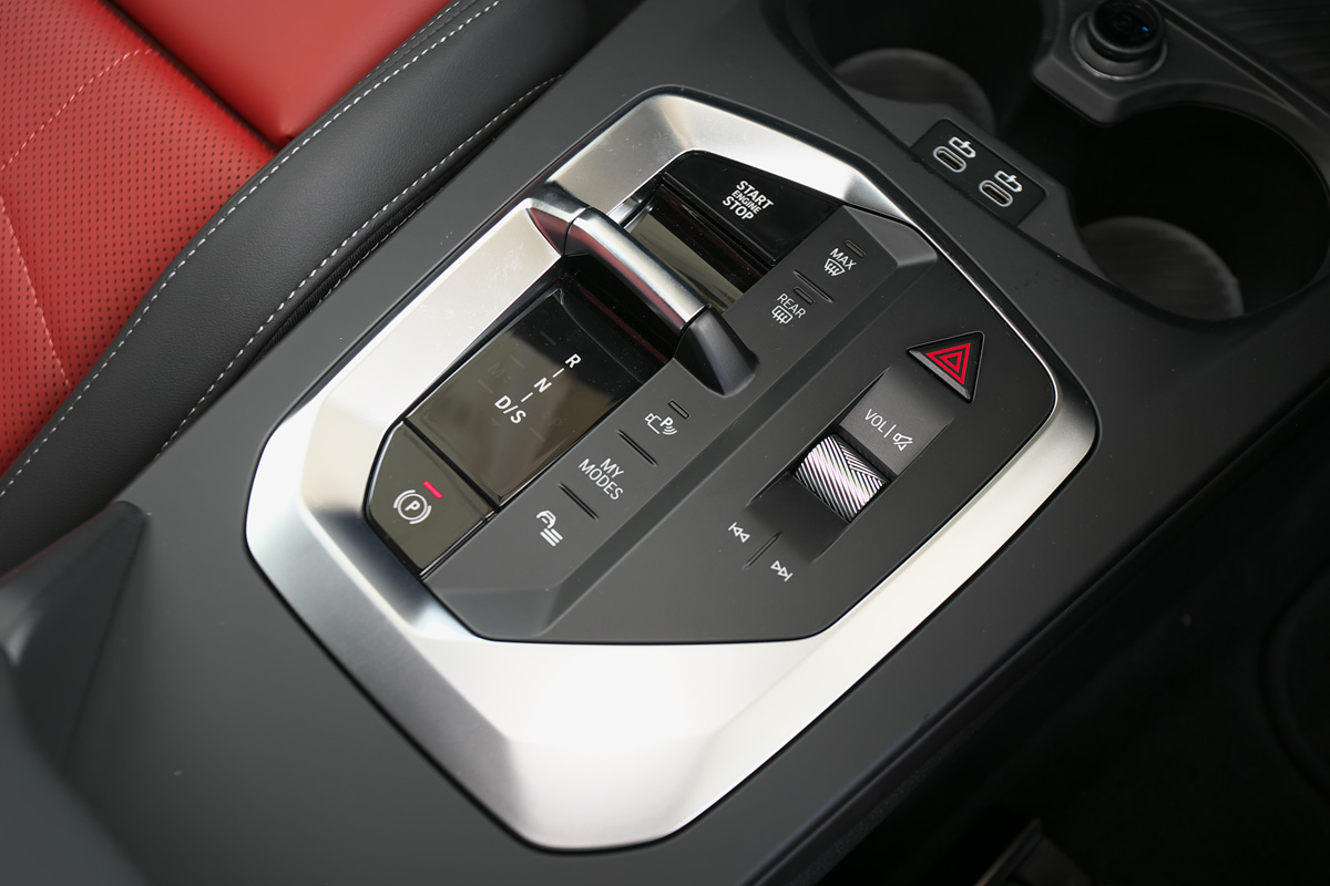 「M235 XDrive」のATは7速だが、そのシフトも、シフトレバーを廃止し、小さなツマミ型のシフトになった。ドライビングポジションは、R/N/D・SとPだけだ。シフトレバーのなくなった前席の中央部分は、ミッション操作系だけに集約された。
