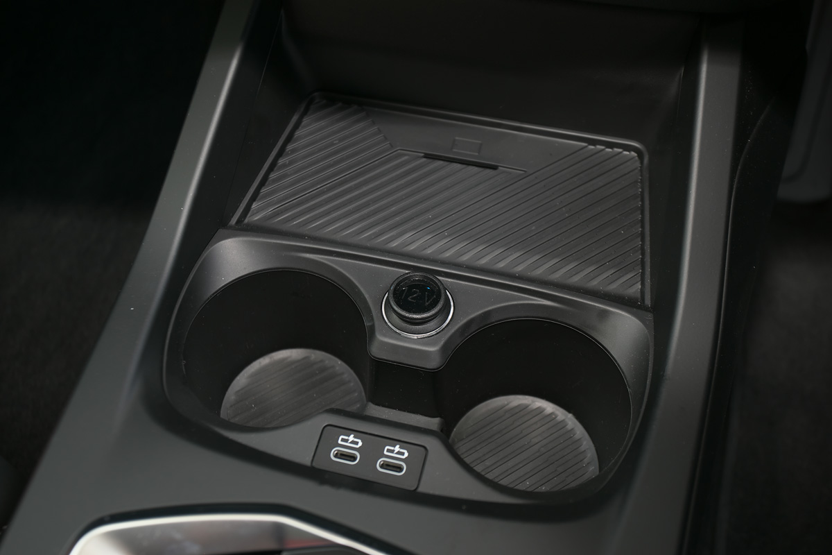 センターコンソールはスマートフォンを置くことで充電もできるスペースだ。さらに「MY MODE」スイッチもあり「パーソナル」「スポーツ」のモードが選べる画面がコントロールディスプレイに現れ、選択できる。