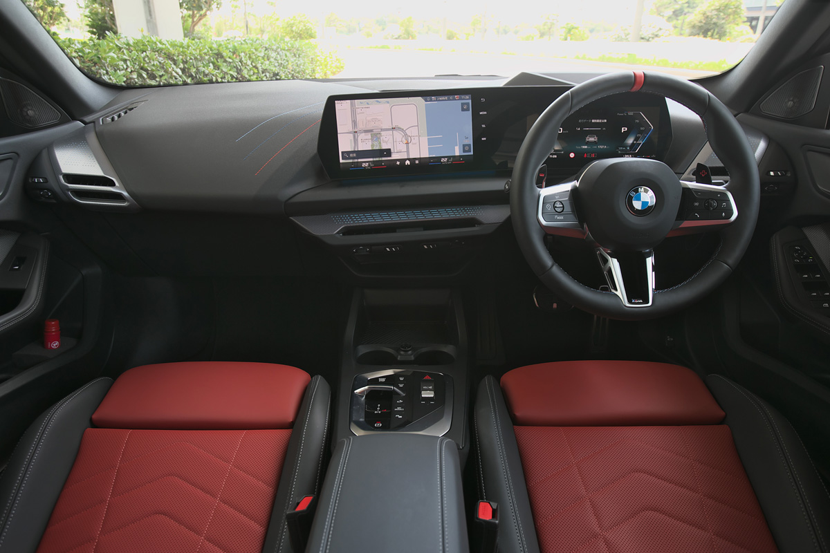 「M235」は、BMWモータースポーツ社を表わす「M」を名乗るだけに、スポーティな味付けとなっている。内外装のチェックがおわったところで試乗だ。