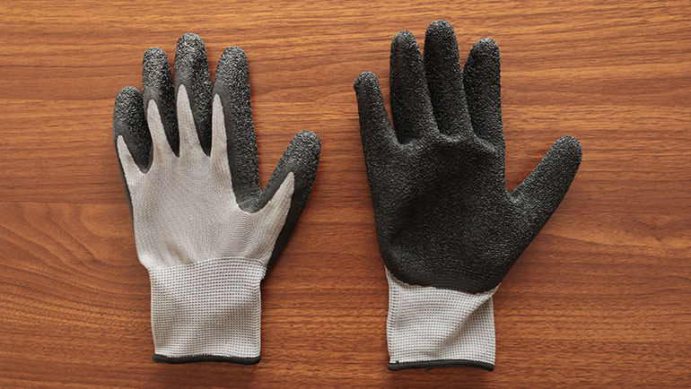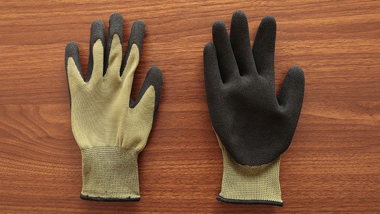 グリップ性と耐久性を兼ね備えた「天然ゴム背抜き手袋」