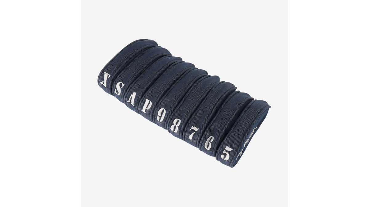 複数のアイアンをまとめて収納し、取り外しも容易な巾着型のデザイン。開口部のドローストリングを絞めることで、アイアン同士をある程度固定することが可能。