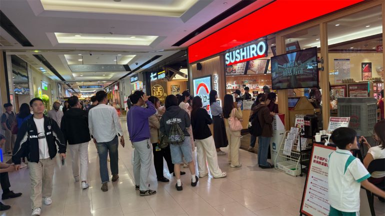 中国のスシローでは、ワイマイという配達サービスを受けることができるため、家で食べる人も含めれば、非常に多くの人がスシローを食べていることになる。
