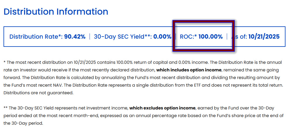 ROCは、日本語だとよく「タコが自分の足を食べる」ことに例え、揶揄される。これは、ETFが得た収益(オプションプレミアム等)以上に分配金を支払う際に、投資家の元本(投資したお金)そのものを取り崩して分配金として支払う仕組みのことだ。