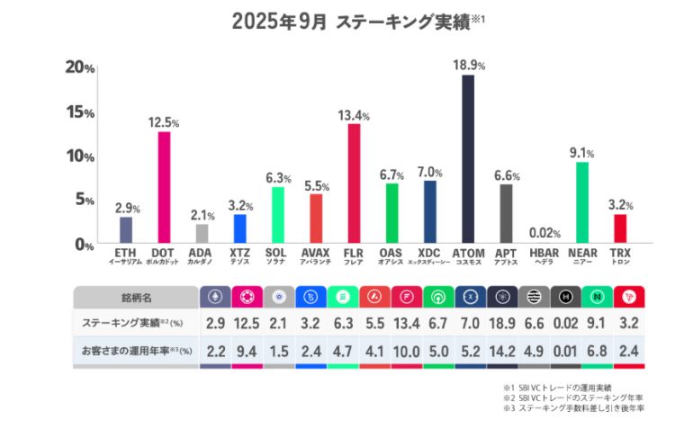 ハードウェアを一切使わず、保有している暗号資産をブロックチェーンのネットワークに預け入れ(ステーク)することで、銀行の利息のように報酬を得る。最も手軽だが、元手となる暗号資産を先に購入する必要があり、その元手から年あたり数%程度の報酬が得られる。「ゼロから資産を生み出す」マイニングとは性質が異なる。