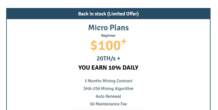 スマホ充電器ほどのサイズのマイニング専用マシンを購入し、コンセントに挿すだけでマイニングを行なう。1台税込99,000円で購入できる。電気代がほぼかからず、法人・個人事業主は10万円未満であれば経費計上(即時償却)できる点が特長。物理的な「モノ」を所有することになるが、同サービスのようにデータセンターに預入できる場合もある。また、マイニングサービスを手掛ける業者が倒産した場合は報酬の受け取りやマイニング継続ができないリスクがある。